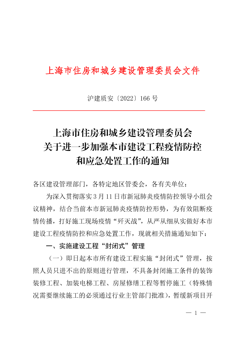 关于进一步加强本市建设工程疫情防控和应急处置工作的通知 ( 2022-03-14 )