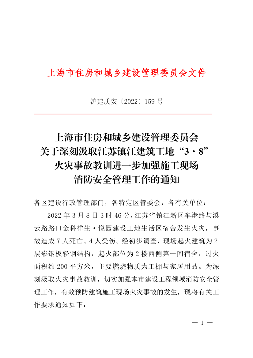 关于深刻汲取江苏镇江建筑工地“3·8”火灾事故教训进一步加强施工现场消防安全管理工作的通知 ( 2022-03-10 )