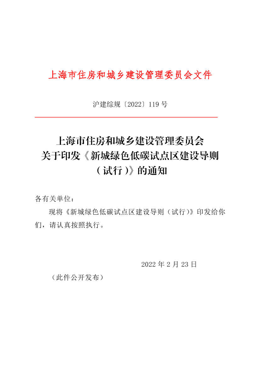 关于印发《新城绿色低碳试点区建设导则(试行)》的通知
