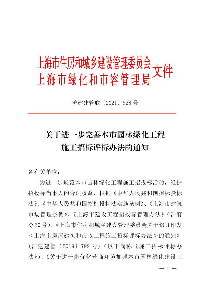 关于进一步完善本市园林绿化工程施工招标评标办法的通知 ( 2021-12-23 )