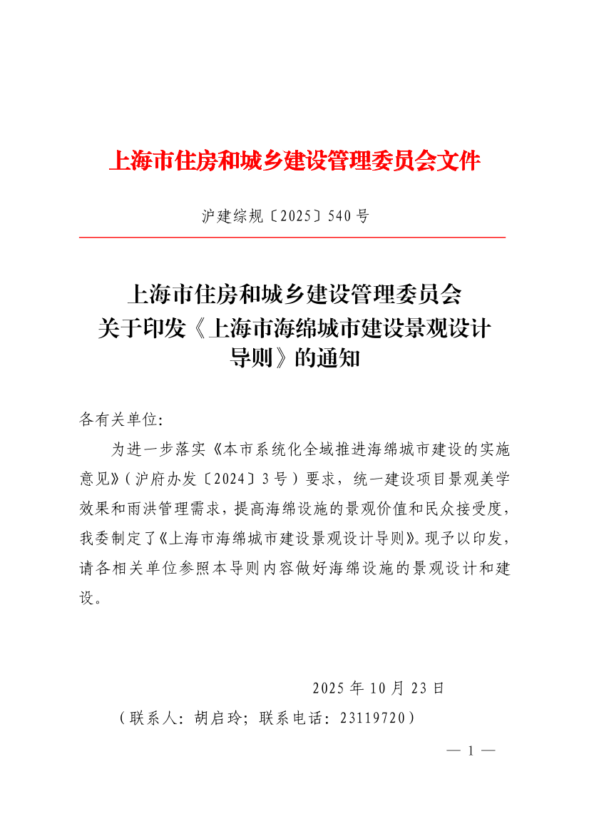 关于印发《上海市海绵城市建设景观设计导则》的通知 ( 2025-10-30 )