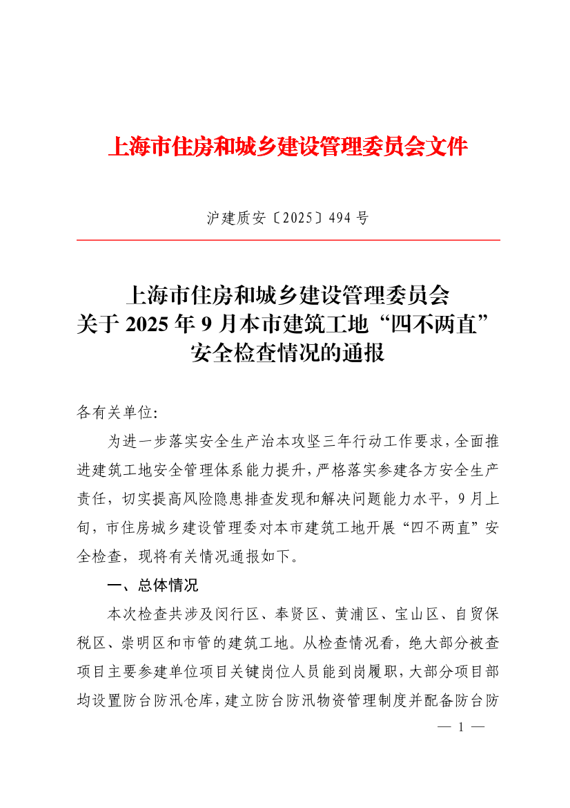 关于2025年9月本市建筑工地“四不两直”安全检查情况的通报 ( 2025-11-17 )