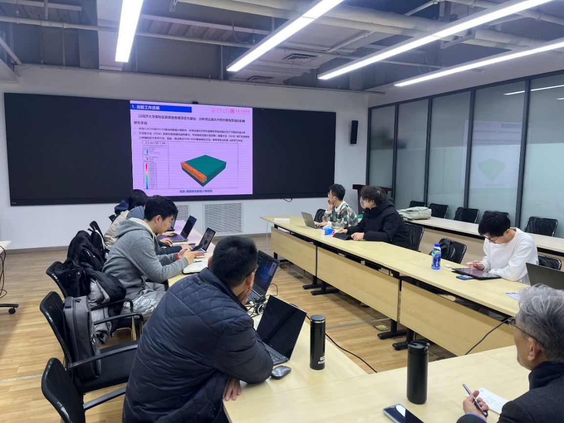 黄宏伟教授与王飞研究员在听取汇报后,对各子课题已开展的工作表示肯定,同时围绕数值模拟的精细化、数据分析的深化与融合、各课题间的逻辑衔接、实验资源利用与成果转化等方面提出指导意见。他们强调,研究必须紧扣工程实际与课题任务书,注重机理分析与实际数据的结合,强化课题之间的协同,避免重复研究,加快推进从理论方法到监测预警应用的完整链条构建。